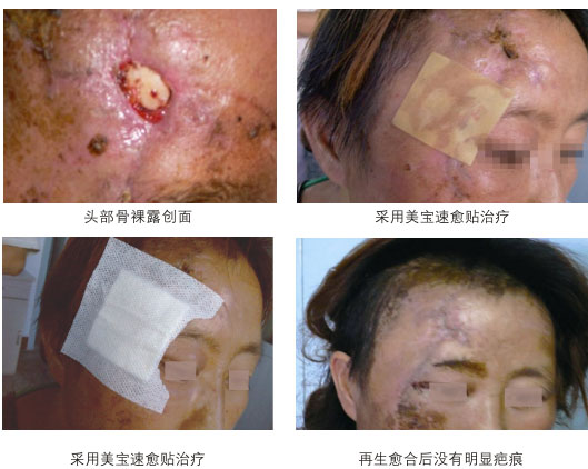 地震期间,因高处掉落的砖、石砸伤头部,导致皮肤软组织缺损,在这些地震伤员的救治中,直接用再生要领,使大量的皮肤软组织缺损的创伤口才再生愈合,不需植皮 。(参见图3)