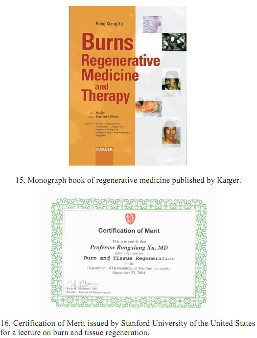 Although we repeatedly explained and popularized the in vivo somatic cell transformation into stem cell on various national and international conferences, the raging waves of international ESC research still exerted a great and extensive impact on the life science research community.  ESC research laboratories were established in many universities and hospitals, all of them are going toward the same dream of the success of ESC research.  In view of this situation, in August, 2002, we held a large press conference for our great and extensive achievements in our own life science research programs, and declared that we already successfully realized the whole process in which somatic cells (potentially regenerative cells, PRCs) can be transformed into stem cells and then regenerate the organs, displayed the materials of cloned tissues and organs, and earnestly announced that we would complete regeneration of all tissues and organs in human body in 5 years.  In the meanwhile, a public hearing organized by Ministry of Science and Technology of People's Republic of China was held and attended by Academicians of Academy of Sciences of China.  Shortly after that, I was invited to attend two international conferences, one was the International Conference on Stem Cells and Regenerative Medicine held in the United States in 2002, the other was Asia Pacific Stem Cells and Cloning Summit held in Singapore in 2003. In the two Conferences, as the invited guest, I presented special speeches on how to clone tissues and organs from somatic cells, and the clinical application for treating traumas and gastrointestinal ulcers.  In 2004, KARGER in Switzerland, one of the world's famous medical publishers, officially published my English regenerative medicine monograph book---'Burns Regenerative Medicine and Therapy'.