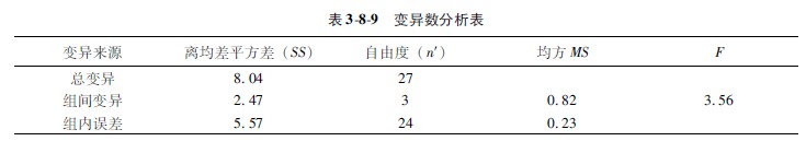 4确定各组均数相差显著时所需Q值:结果见表3811 。