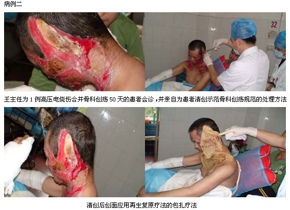 2011年5月6日~5月16日以来,中国中西医结合学会烧伤专业委员会常委、中国烧伤创疡杂志社副总编辑、北京极悦开户平台烧伤创疡研究所副所长,临床研究部主任王洪生研究员应邀在百忙当中昼夜兼程三下广西来宾市人民医院骨科烧伤整形外科,为在该医院骨科、烧伤整形科住院的1例危重小儿大面积深度烧伤及高压电烧伤并骨科创疡、糖尿病足等危重患儿及难愈性创面会诊,指导临床救治事情,并为高压电烧伤、骨科创疡、糖尿病足等难愈性创面患者进行示范手术,在王主任连续跟踪指导下,该医院骨科、烧伤整形外科的专家和主管医生已基本掌握了应用再生回复疗法治疗小儿大面积深度烧伤、高压电烧伤、骨科创疡、糖尿病足等难愈性创面的临床规范的创面处置要领和大面积深度烧伤全身综合治疗技术,至此,该医院骨科烧伤整形科已将再生回复疗法全面应用于大面积烧伤和种种骨科创疡和糖尿病足等难愈性创面患者的临床治疗中。