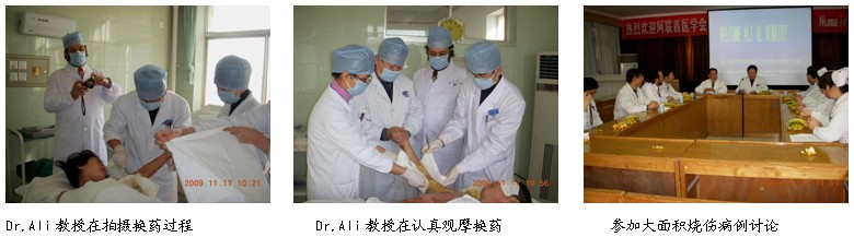2009年11月14日,Dr.Ali应邀加入了在北京协和医院举办的2009年第37届北京国际微创外科大会,本次大会是由国际外科学院(ICS)与中华医学会外科学分会和北京协和医院联合举办,国际外科学院1935年建立于日内瓦,目前拥有全球70多个国家和地域的分会,在国际上有较高的学术影响力,加入本次大会有来自美国、英国、法国等多个国际外科专家,共计20余人。Dr.Ali应邀以“烧伤湿润袒露疗法”为题,向世界各国的外科专家介绍了他应用烧伤再生医学技术治疗种种烧伤、创疡患者所取得的效果和实现皮肤再生回复的机理等,专题演讲引起了美国、英国、德国等世界各国外科专家们的很大兴趣,都对此项技术在治疗烧伤创面的不疼痛、不损伤、方便实用且能够实现皮肤高质量再生愈合而感应无比的震惊和佩服,都希望更多地了解、学习和应用该项技术治疗种种烧伤、溃疡和难愈合创面。烧伤湿润袒露疗法,被认为是本次大会所介绍的微创治疗要领中创伤最小、且治疗效果最好的治疗要领,值得临床推广使用。